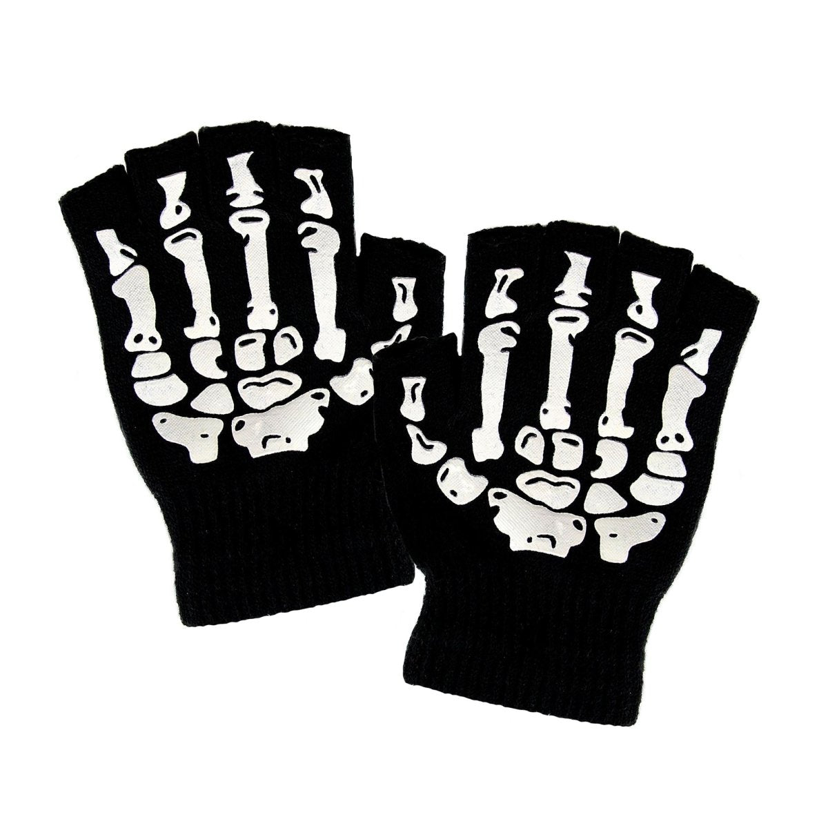Guanti di Halloween Nero Bianco Scheletro senza dita