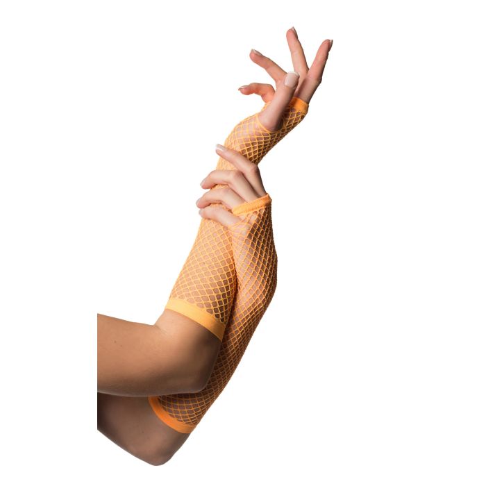 Guanti senza dita lunghi a rete arancione neon