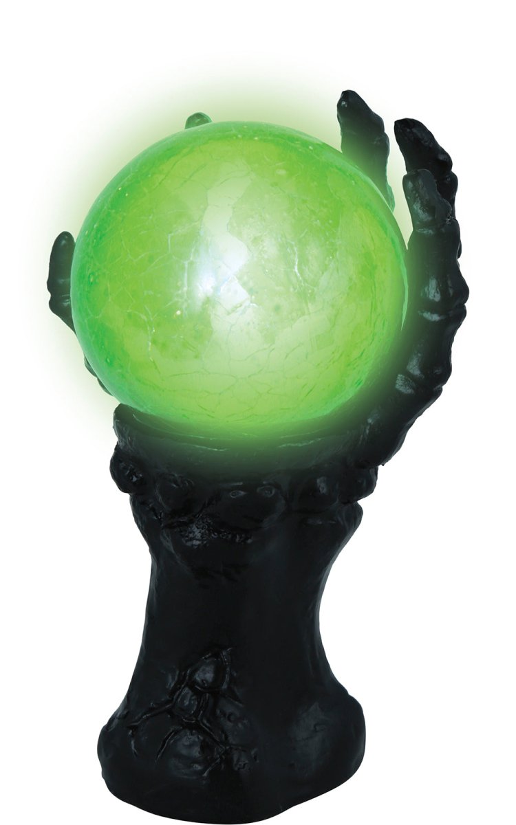 Mano decorativa di Halloween con sfera di cristallo e luce 14,5 cm
