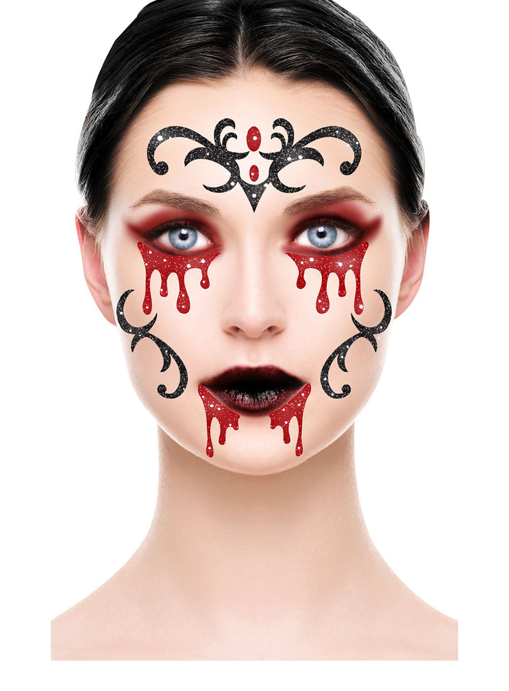 Adesivi viso Halloween Vampiro Glitter 20 cm