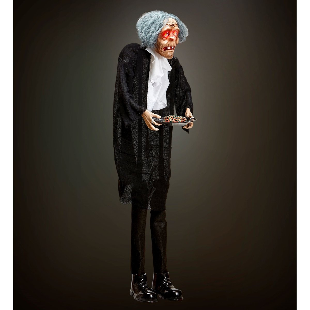 Dai alla tua festa di Halloween un aspetto spaventoso con questa bambola Butler di 1,2 metri. Il pupazzo è dotato di occhi lampeggianti e suoni, che lo rendono una decorazione accattivante e spaventosa per la tua festa o per il tuo spazio a tema.