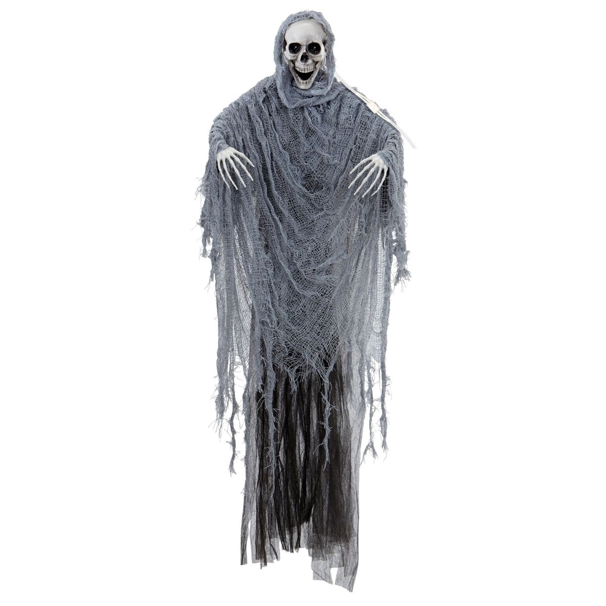 Porta l'emozione in casa tua con questa bambola Halloween Skinny Reaper alta 100 cm. La bambola ha una testa mobile, occhi luminosi ed emette suoni spaventosi per un effetto ancora più inquietante. Grazie al suo sensore sonoro , reagisce ai suoni nelle vicinanze e inizia automaticamente a muoversi e a parlare. La bambola funziona a batterie ed è facile da accendere con un interruttore
