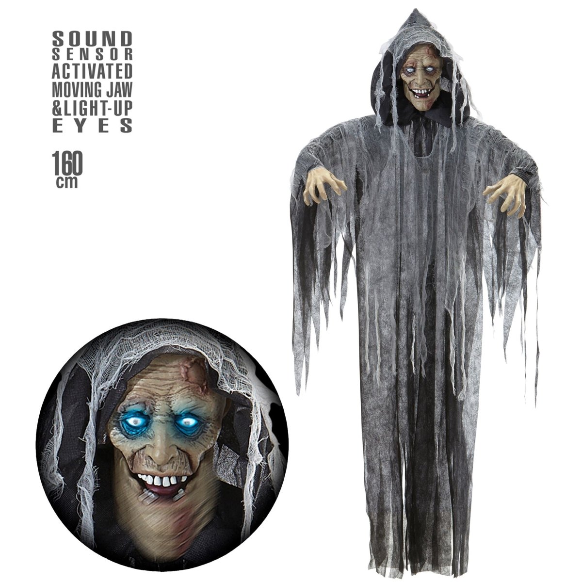 Bambola Halloween Zombie grigia con suoni, luci e movimenti