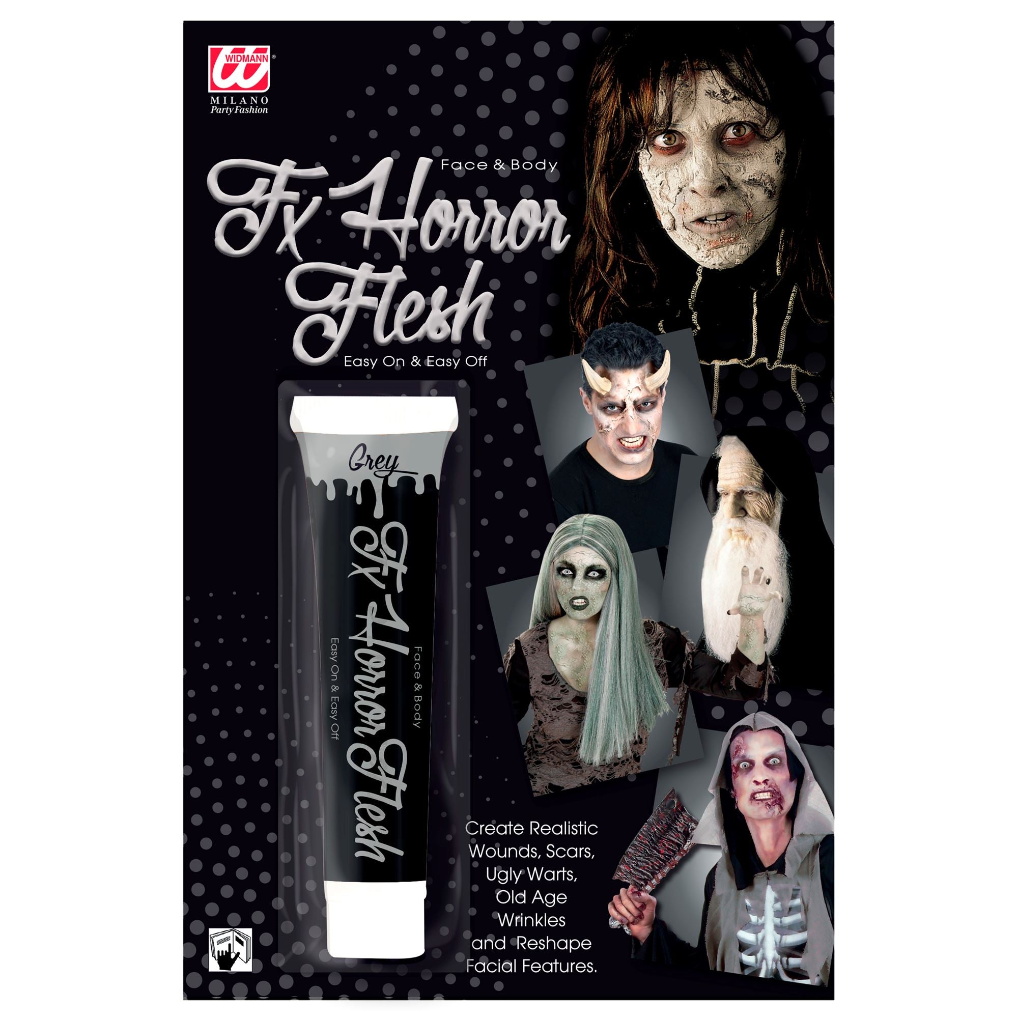 Completa il tuo look di Halloween con questo trucco grigio di alta qualità. Perfetto per i bambini e gli adulti che desiderano creare un look in costume di grande effetto.