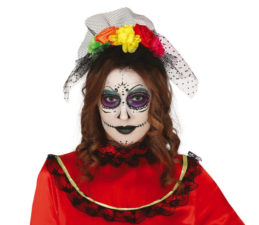 Tiara di Halloween Fiori e Velo Colorati