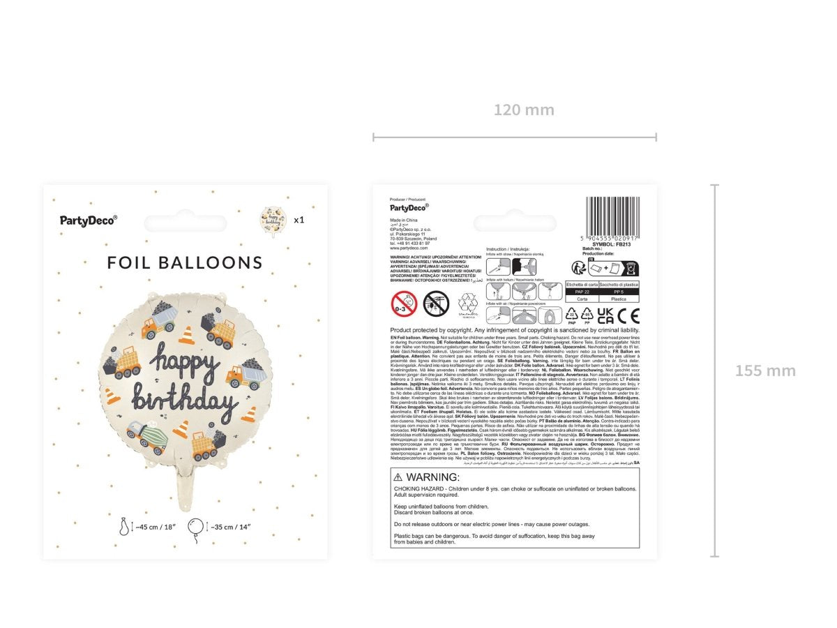 Palloncino ad elio Happy Birthday Veicoli da Costruzione Vuoto 45cm