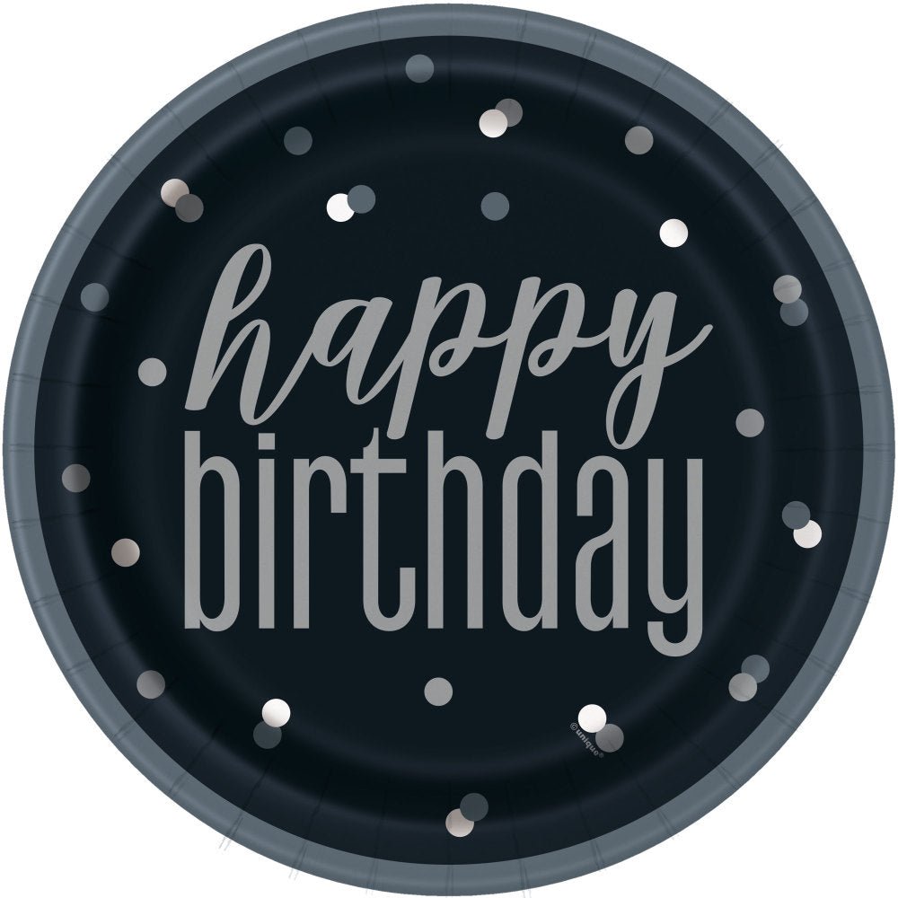 Piatti di buon compleanno a pois neri da 22,2 cm 8 pezzi