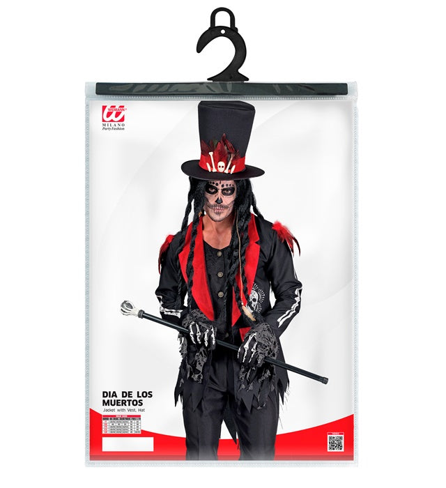 Completa il tuo outfit con questo sorprendente cappotto in stile Giorno dei Morti, riccamente decorato e perfetto per Halloween, feste a tema o colorati momenti di travestimento.