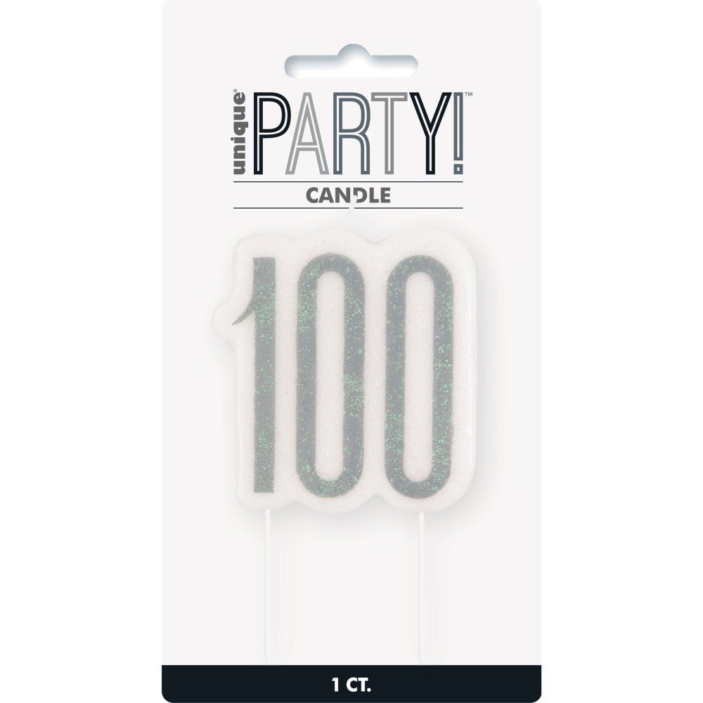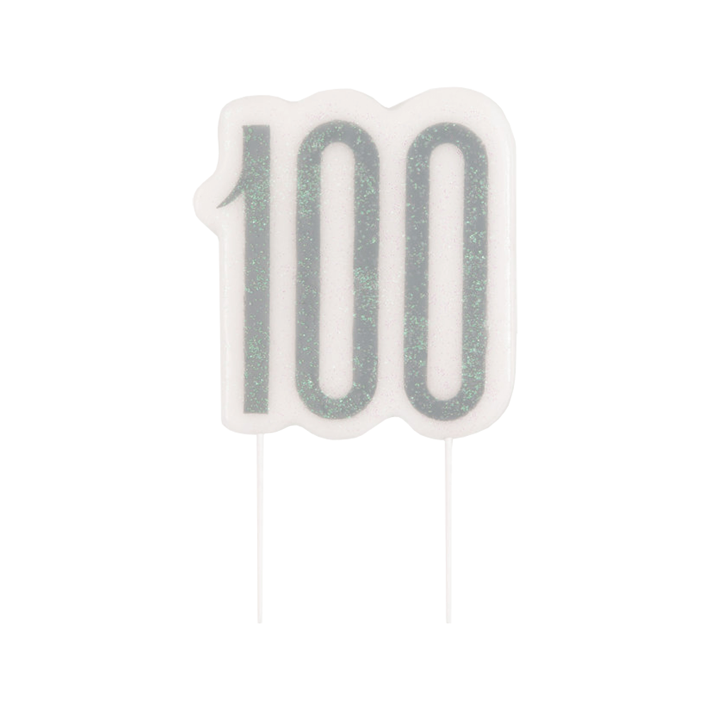 Candela 100 Anni Glitterata Argento 8,5 cm