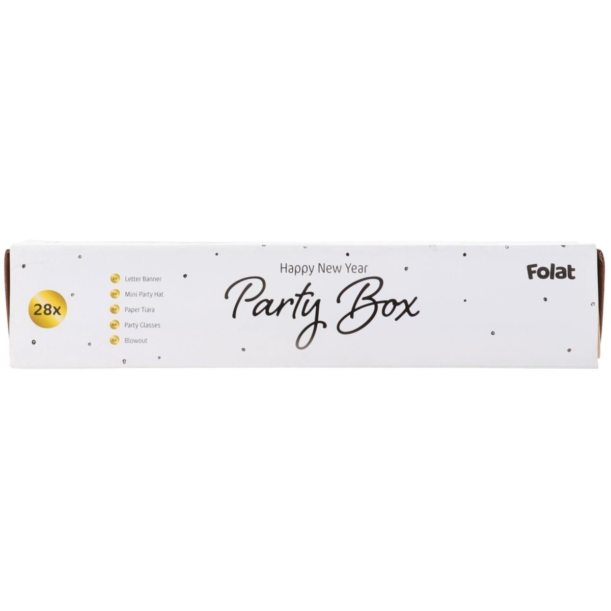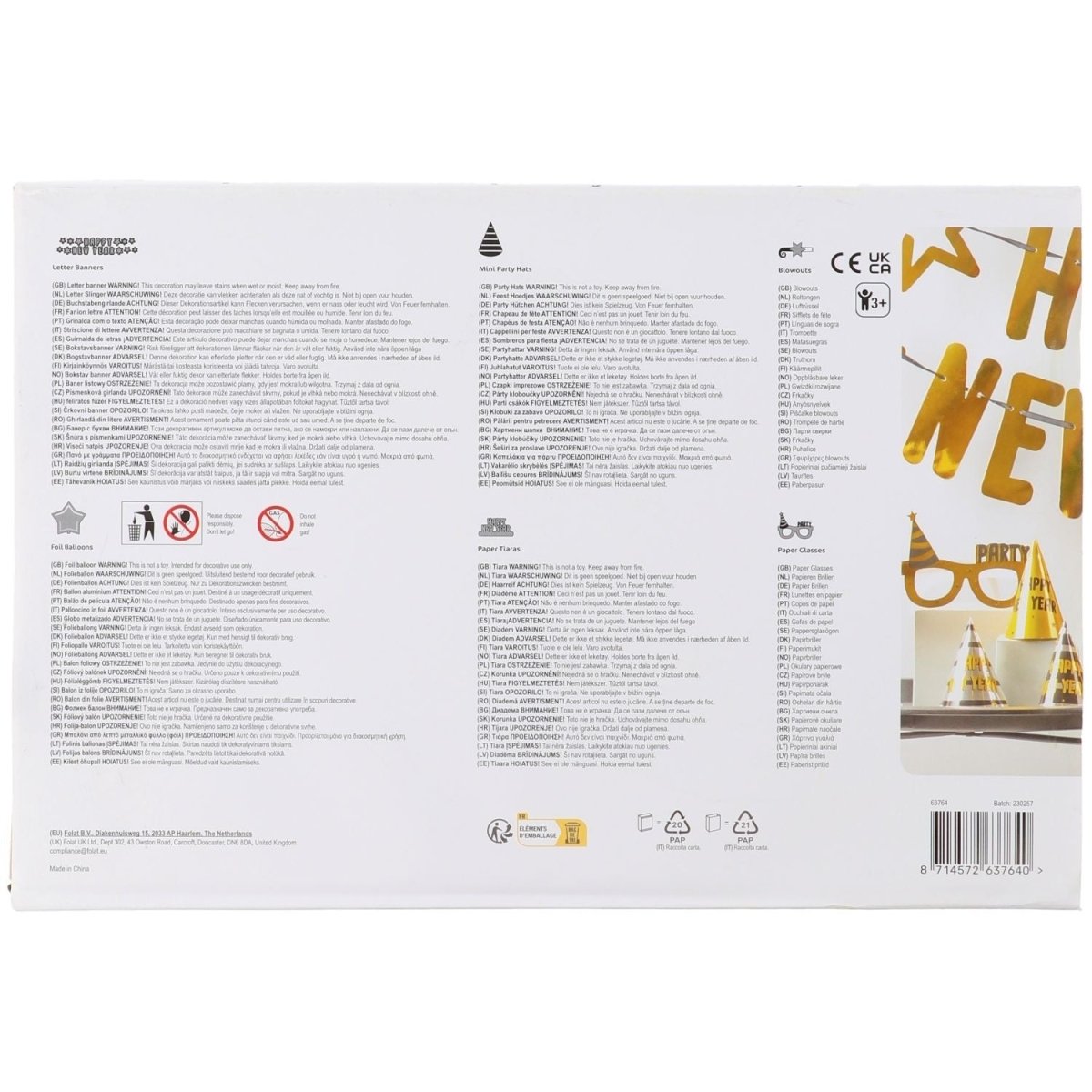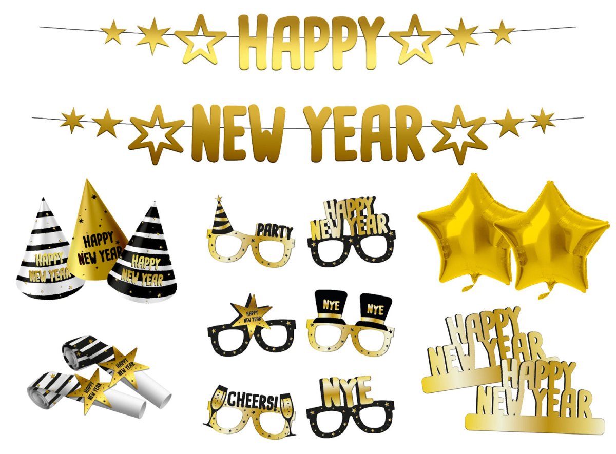 Una grande festa di Capodanno! Pacchetto festa Buon Anno, BlackGold HNY. Contenuto: 1 confezione party. Da utilizzare, ad esempio, durante le seguenti feste/occasioni di festa: Capodanno. Con questo party pack, ogni festa di Capodanno sarà subito ben organizzata. Il tutto nello stesso elegante tema BlackGold HNY, completo di ben 28 articoli per feste: 2 ghirlande di lettere, 6 cappelli da festa, 6 lingue rotolanti, 6 bicchieri di carta da festa, 6 diademi e 2 palloncini a forma di stella dorata. La scatola è in carta.