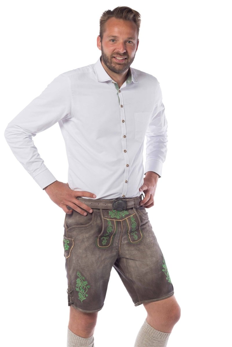 Lederhose in pelle corta verde e cintura