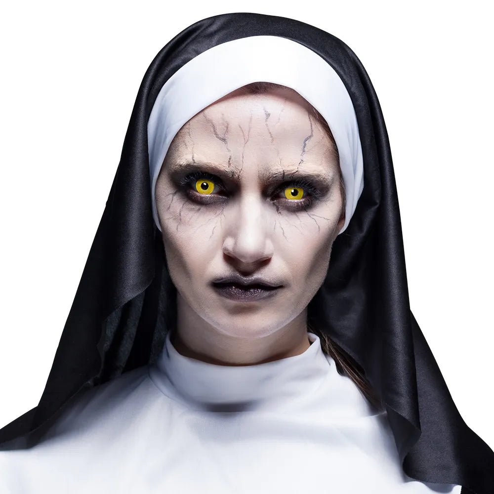 Guardare qualcuno in modo penetrante è molto facile con queste lenti UV flash giallo brillante. Si illuminano alla luce del sole, quindi lo sguardo spaventoso è garantito. Abbinate a un costume da suora scuro o a un berretto da suora, renderanno il tutto davvero raccapricciante. Queste morbide lenti di Halloween senza prescrizione medica possono essere utilizzate per 1 mese, quindi potrai continuare a usarle per spaventare le persone anche dopo la festa.