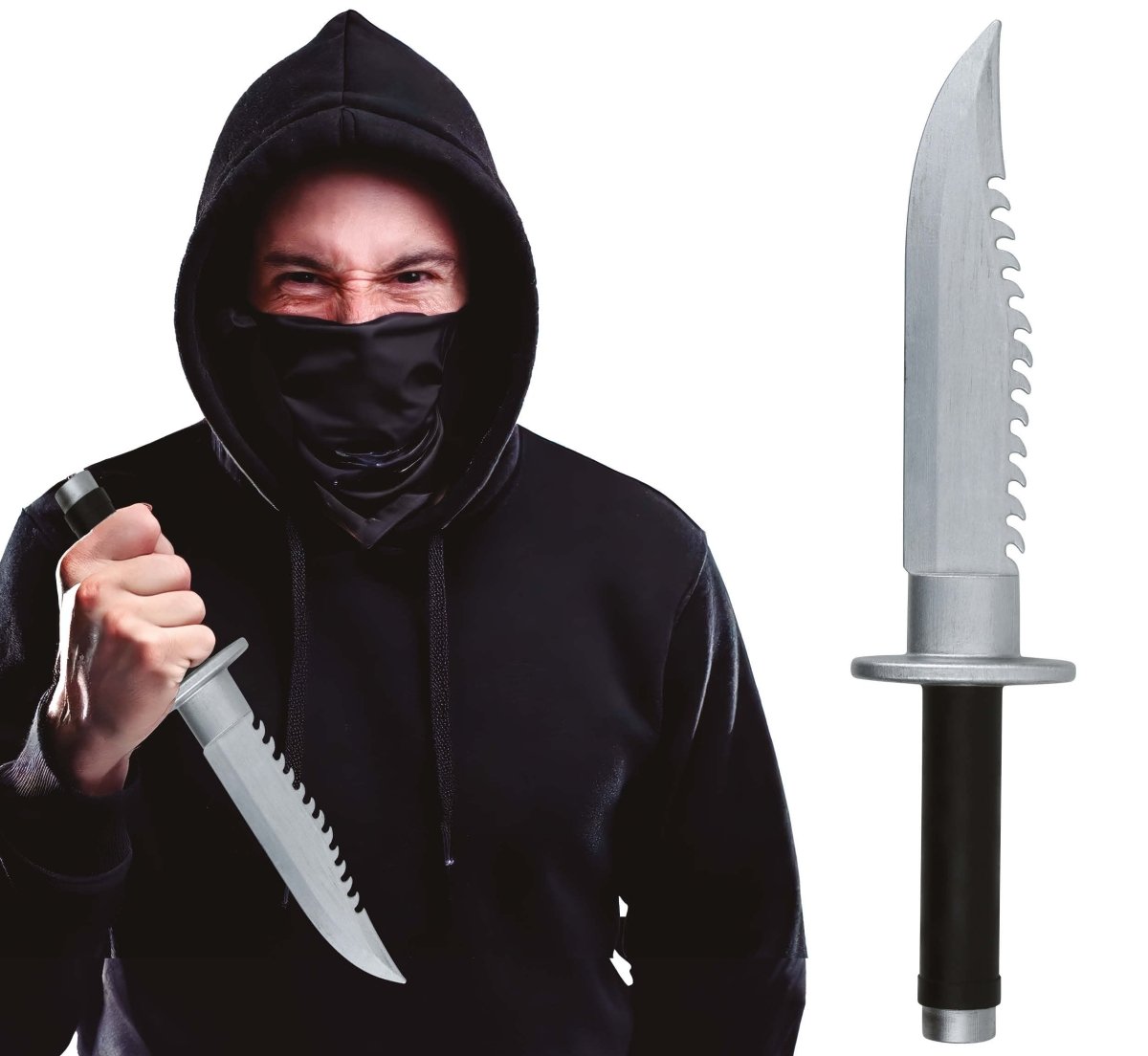 Completa il tuo costume di Halloween con questo finto machete da 40 cm. L'accessorio è realizzato in PVC e ha un design realistico, ideale per i temi horror o da serial killer. Perfetto per Halloween, per feste a tema o per spettacoli teatrali.
