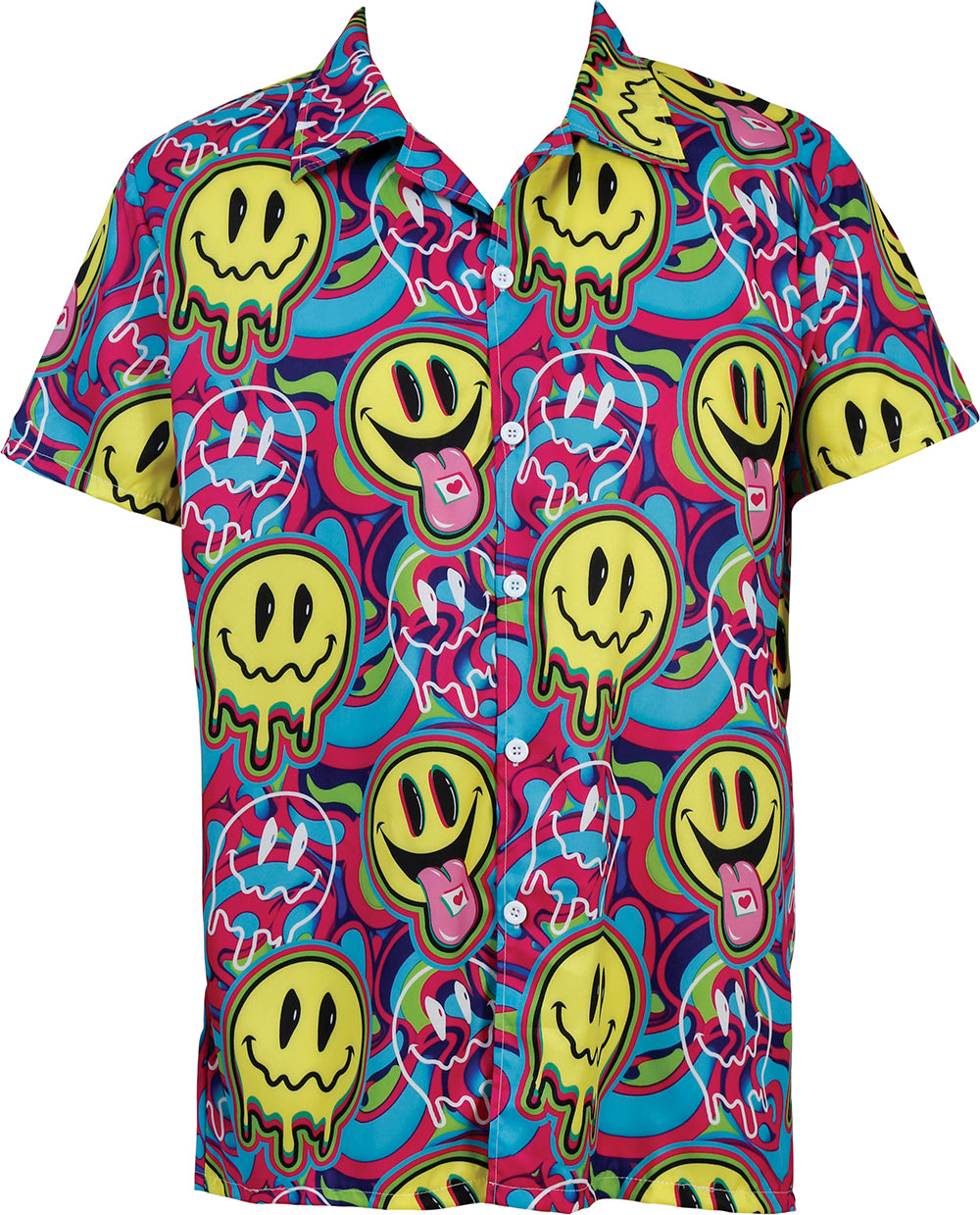 Fai rivivere gli anni '80 con questa accattivante camicia Acid. La combinazione di rosa, blu e giallo crea un vero look vintage, perfetto per feste a tema, carnevali o festival. La camicia è realizzata in poliestere leggero e morbido, che la rende comoda da indossare tutto il giorno.