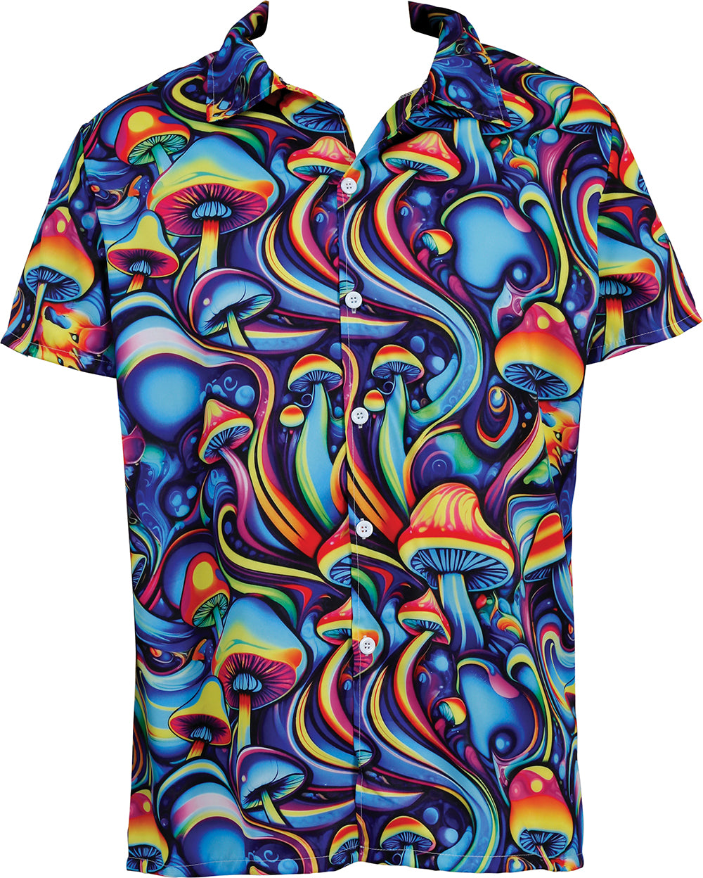 Distinguiti con questa vivace camicia Psychedelic Shrooms in blu, verde e arancione. I colori vivaci e il motivo unico conferiscono alla camicia un look davvero retrò, perfetto per feste a tema, festival o carnevali. Realizzata in poliestere leggero e flessibile per un comfort e una libertà di movimento ottimali