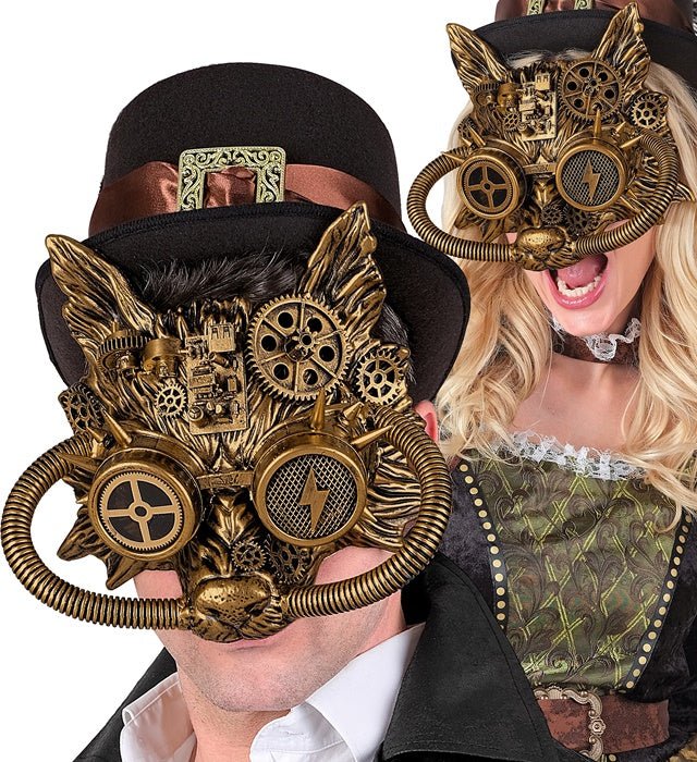 Completa il tuo abbigliamento con questa accattivante maschera steampunk a forma di volpe. Il design dorato conferisce un aspetto misterioso ed elegante, ideale per Halloween, per i cosplay o per le feste a tema.
