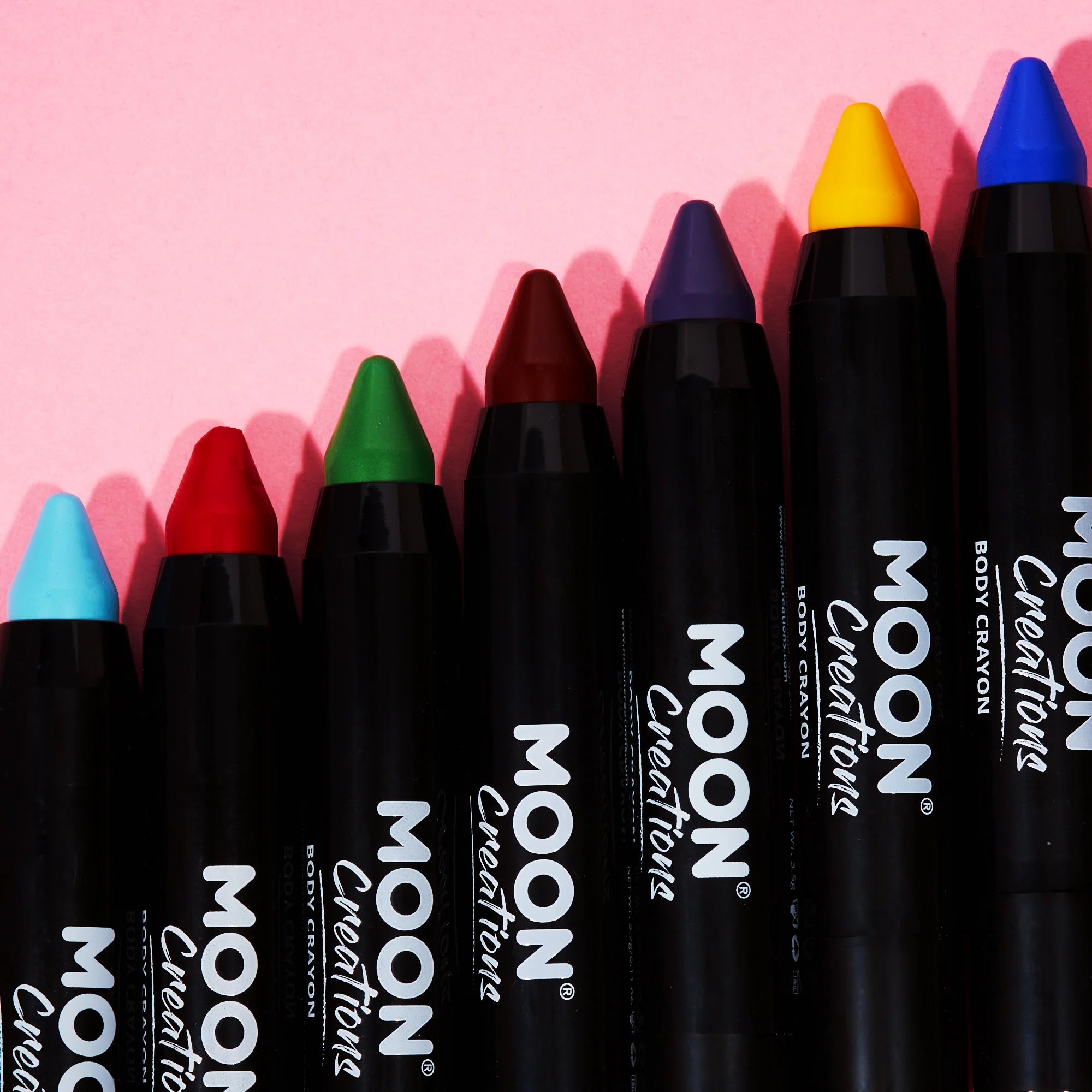 I pastelli sono pronti all'uso - non è necessaria l'acqua. Sono facilissimi da applicare direttamente sul viso o sul corpo, senza disordine né abilità!