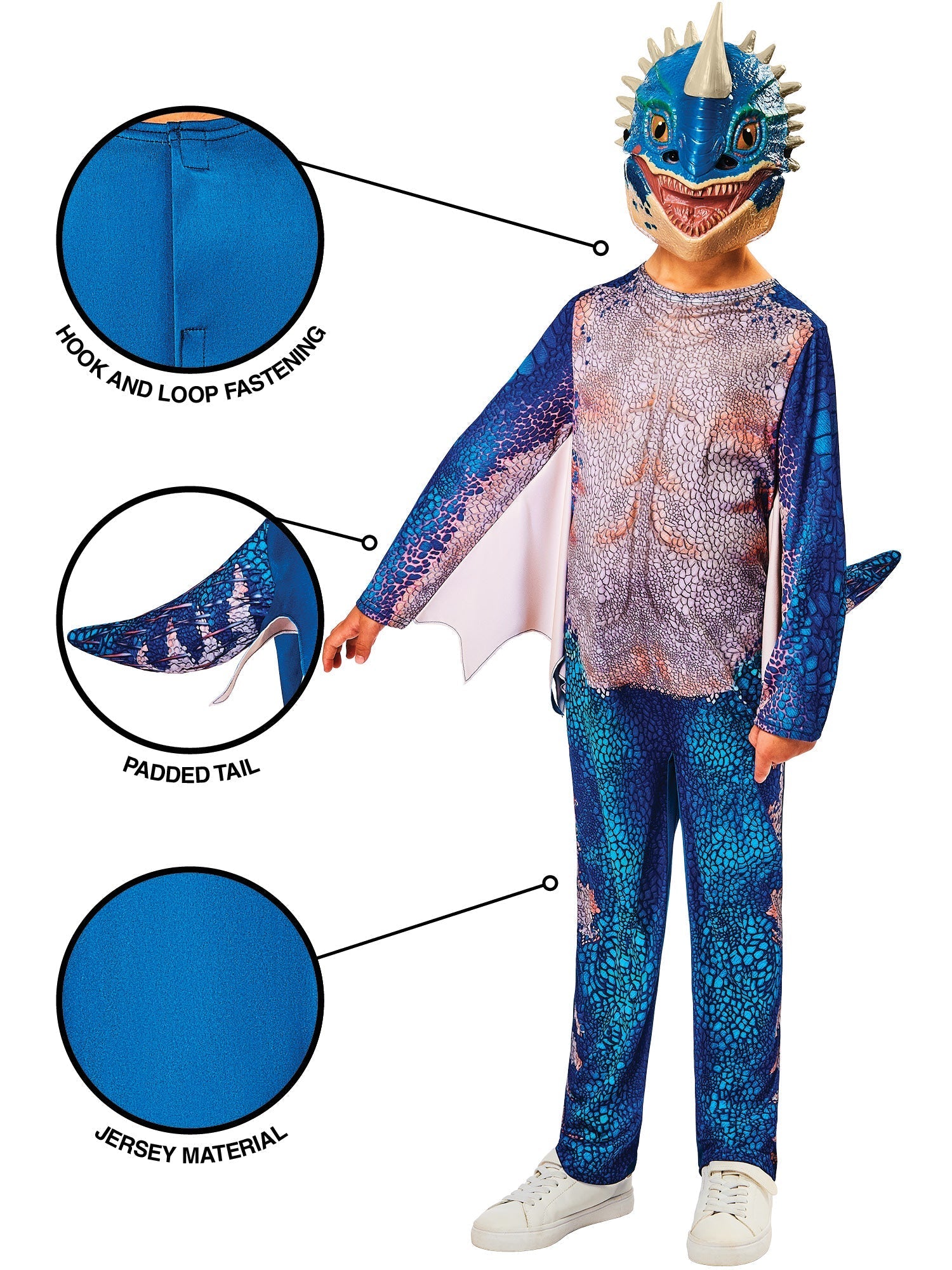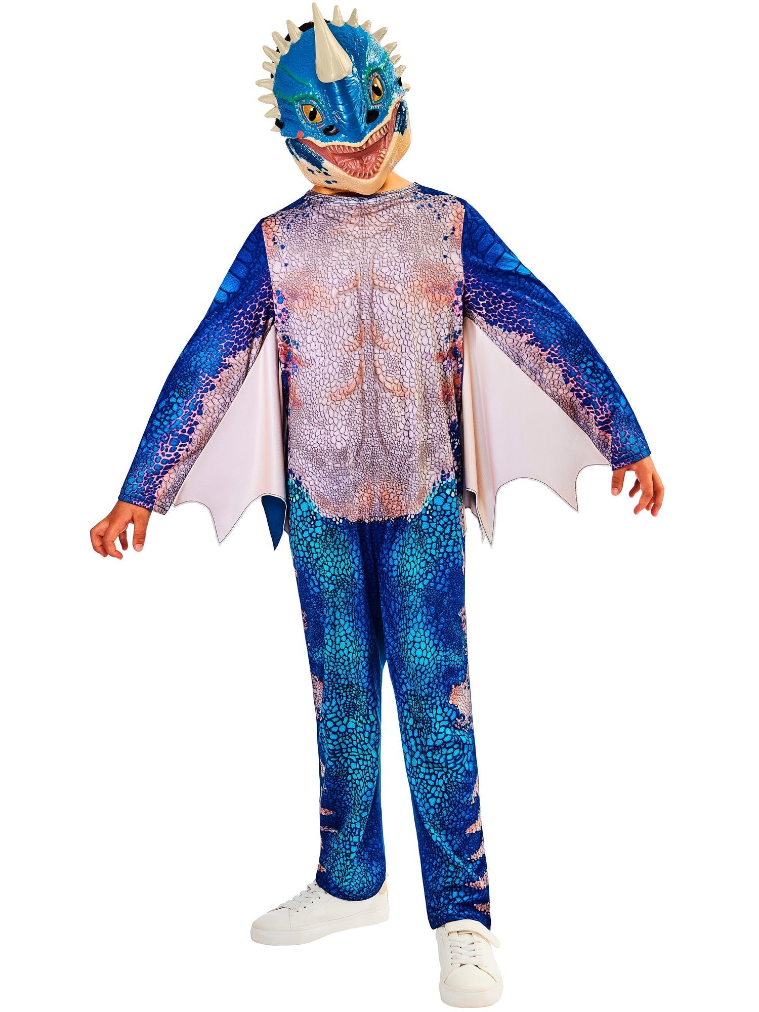 Vola sopra le montagne nei panni di Nadder, l'iconico drago della nuovissima rivisitazione live-action di Come addestrare il tuo drago! Questo costume dettagliato comprende una tuta stampata di alta qualità, ali attaccate, una coda e una maschera abbinata, con tanti dettagli in 3D. Perfetto per affrontare i cieli come un vero drago.