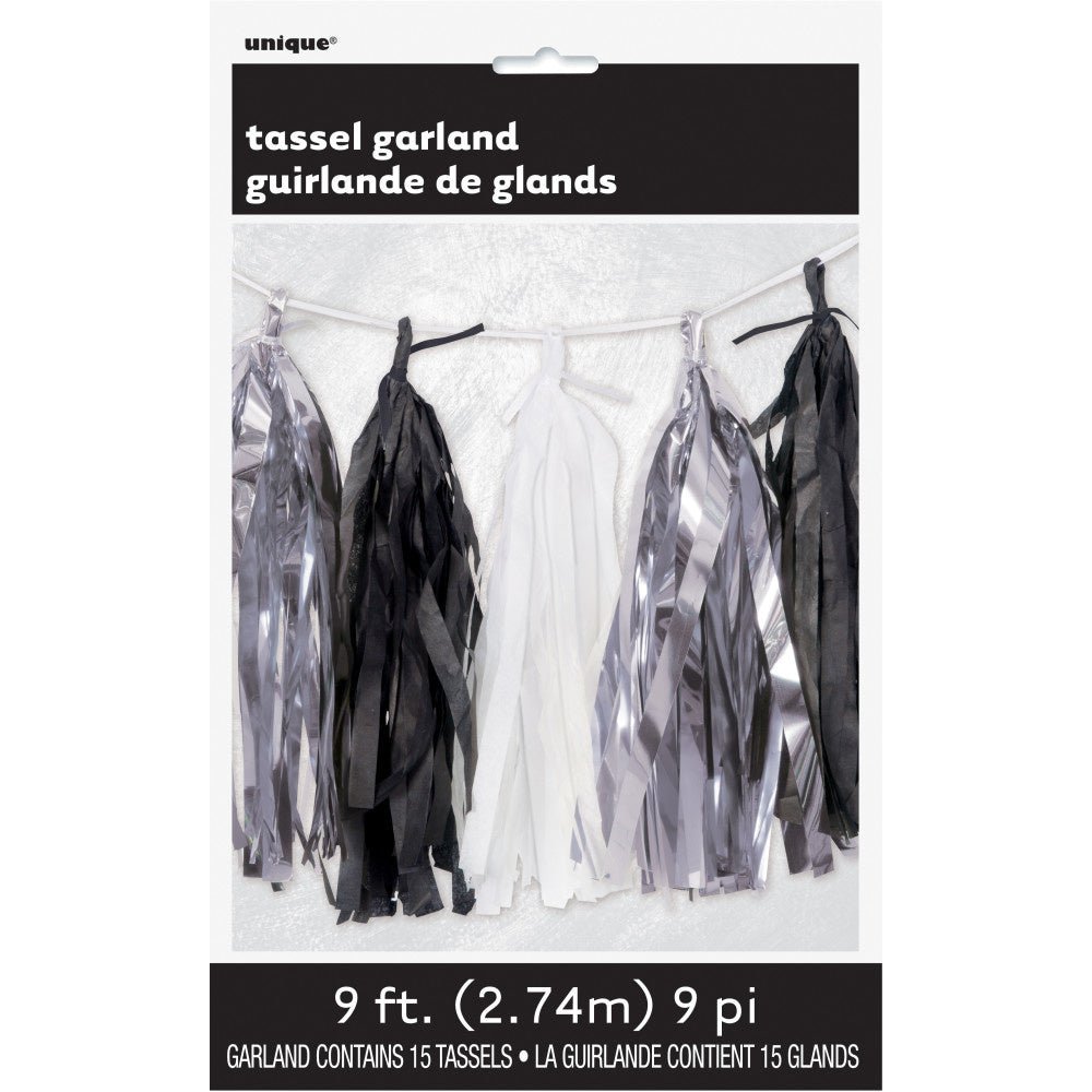 Ghirlanda di nappe Nero Bianco Argento 2,7 m