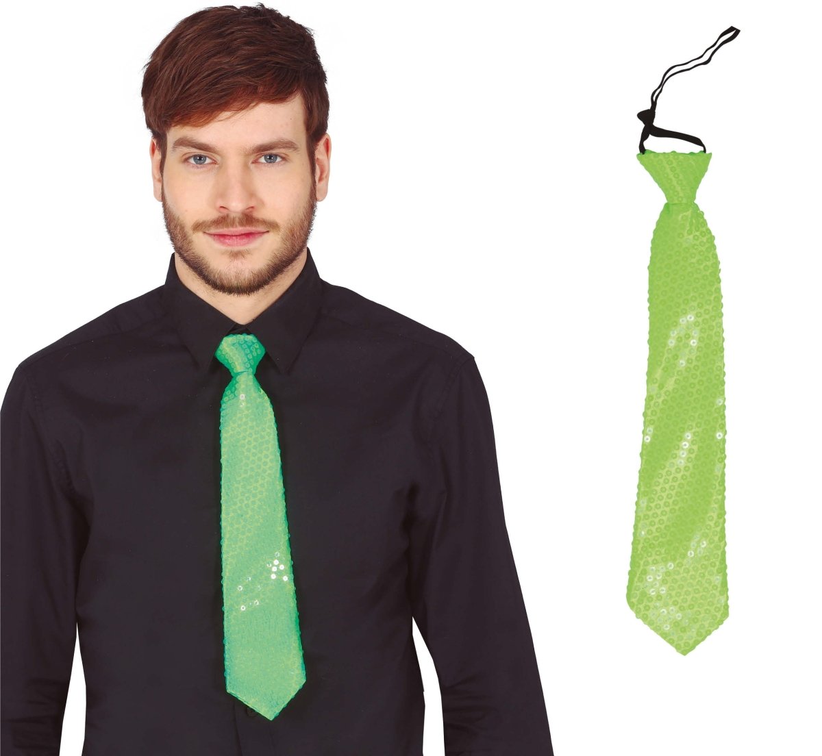 Cravatta verde neon glitterata 37 cm