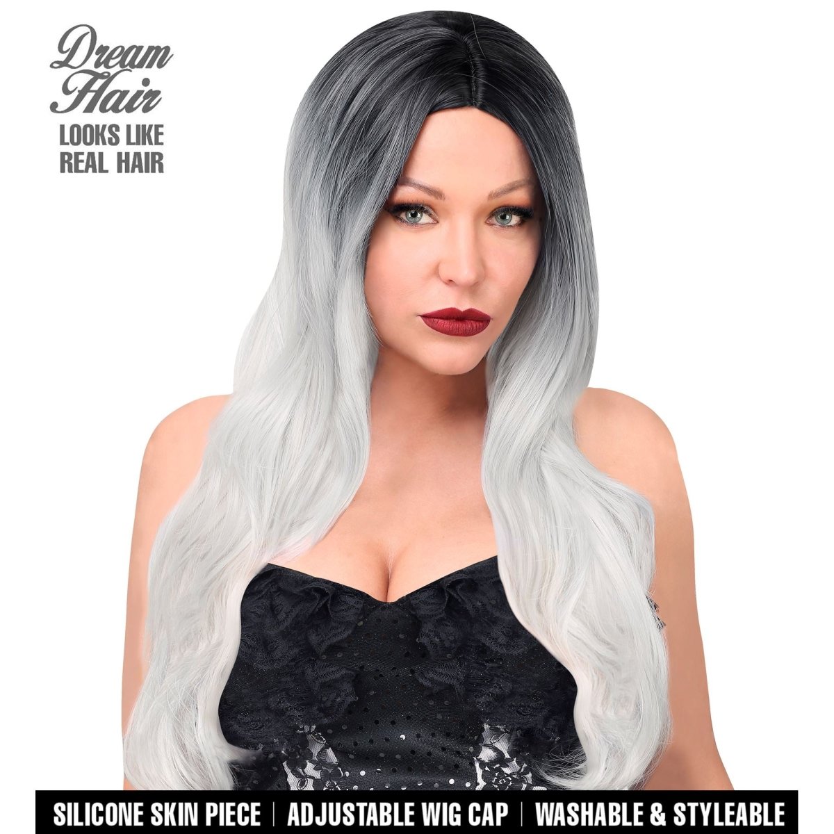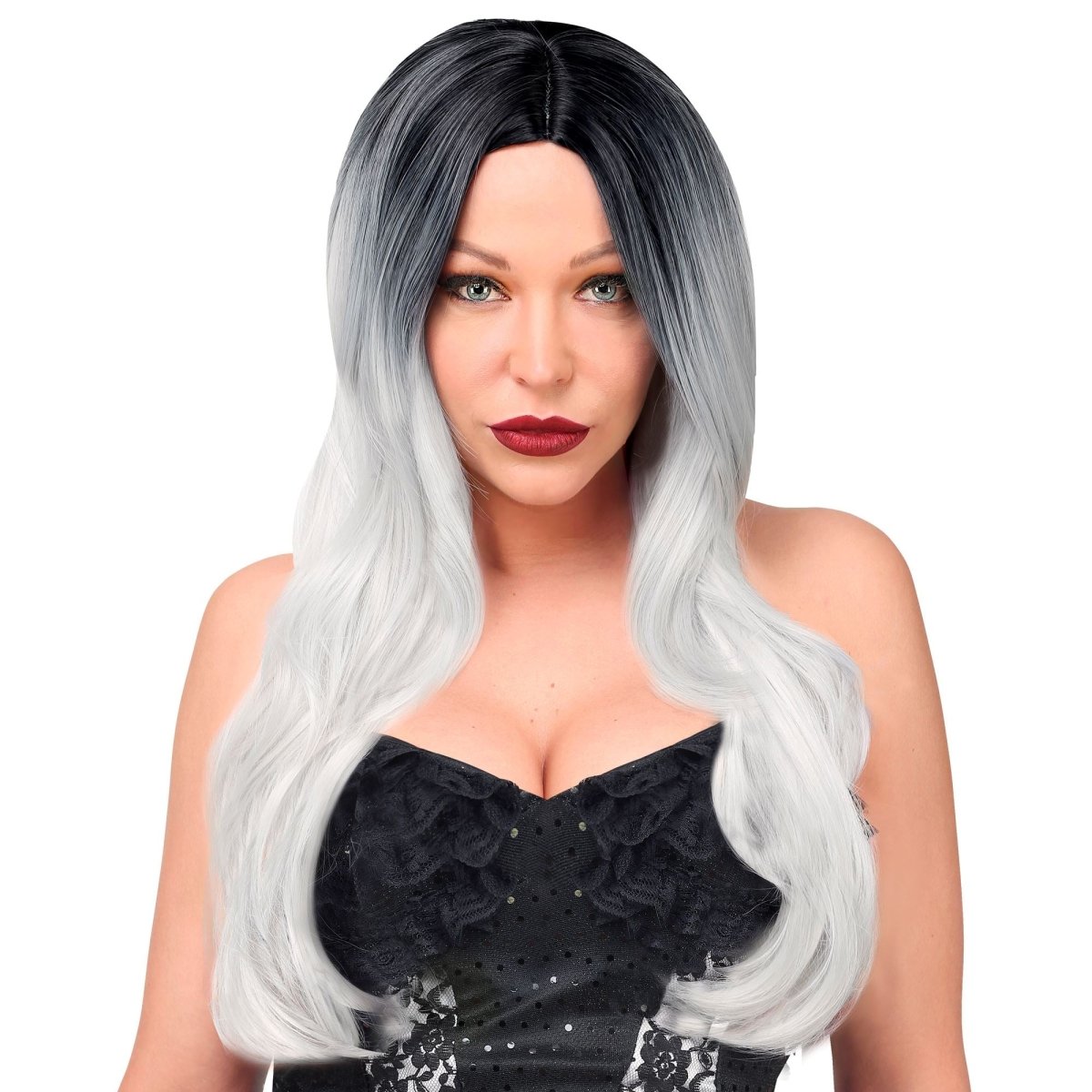 Parrucca bianca e nera capelli lunghi