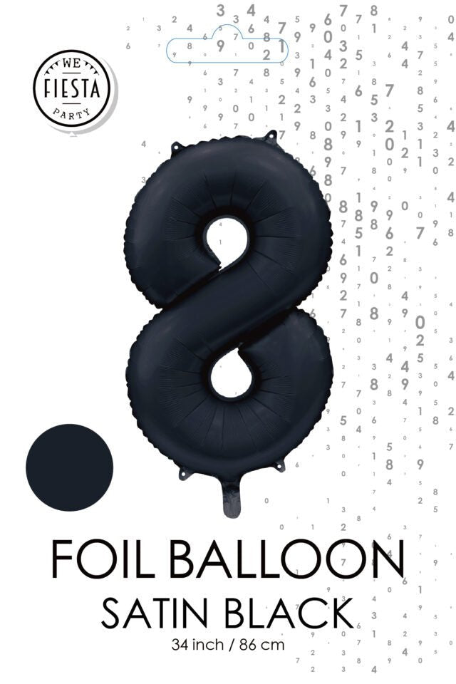 Palloncino nero a forma di figura 8 anni lucido 86 cm