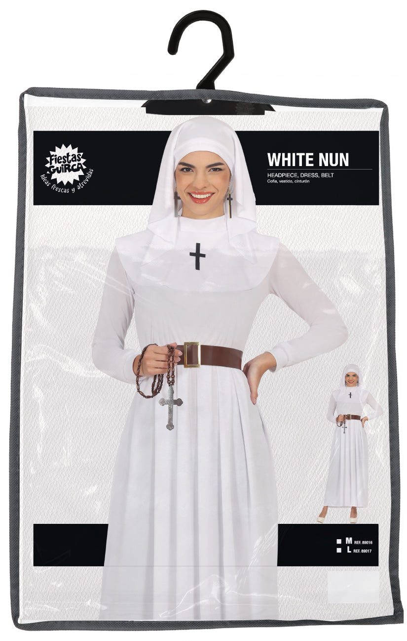 Vesti i panni di una suora bianca con questo costume completo, ideale per feste a tema, carnevali e feste in maschera.