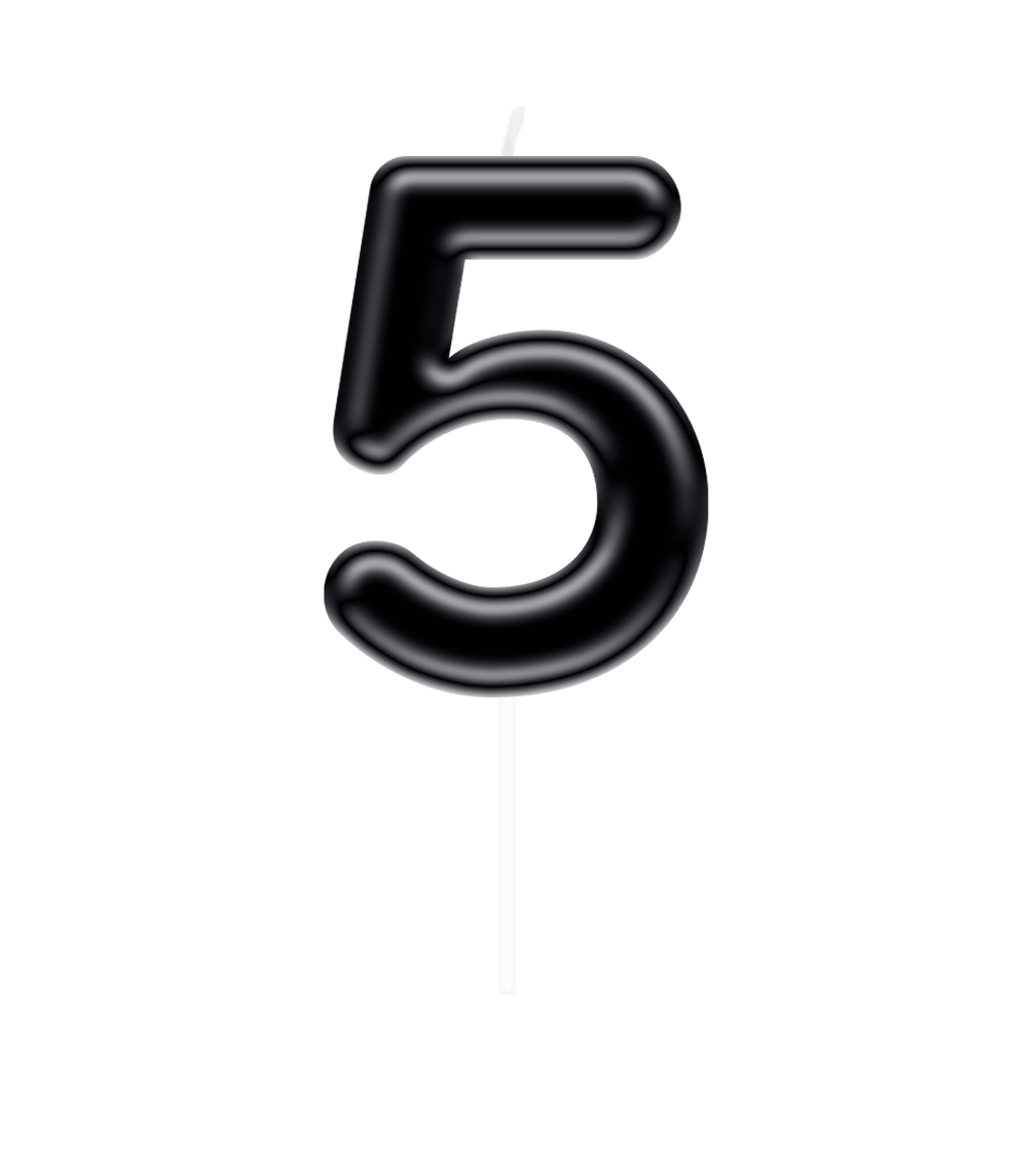 Festeggia con stile ogni traguardo con questa candela numerica nera "5". Perfetta per segnare età, anniversari o altre occasioni speciali. Il colore nero fa risaltare la candela su qualsiasi torta o cupcake