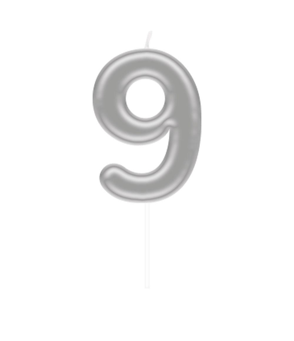 Festeggia con stile ogni traguardo con questa candela numerica argento "9". Perfetta per segnare età, anniversari o altre occasioni speciali. Il colore argento lucido fa risaltare la candela su qualsiasi torta o cupcake.