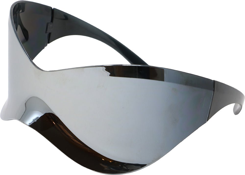 Dai al tuo look un aspetto moderno e audace con questi futuristici occhiali da sole a specchio. La montatura nera con effetto specchio argentato rende questi occhiali ideali per feste, festival o per uno street style accattivante.