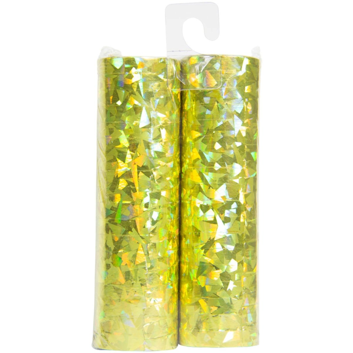 Serpentine olografiche color oro 4m - 2 pezzi. Una confezione contiene 2 rotoli di serpentine da 4 metri. Da utilizzare, ad esempio, durante le seguenti occasioni di festa: compleanno, festa per bambini. I serpentoni hanno una lunghezza totale di 4 metri. L'articolo è realizzato in carta stagnola.