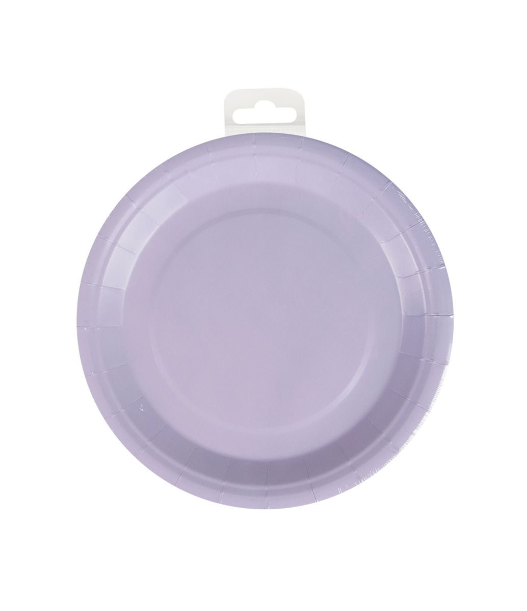 I Piatti - Viola pastello sono gli articoli di decorazione perfetti per una festa che ha come tema il viola pastello. Questi piatti hanno dimensioni di 23 x 23 cm, sono confezionati per 8 e si abbinano perfettamente agli altri articoli viola pastello come i coriandoli, i tovaglioli, le tazze, le tovaglie, le scatole per gli snack e la linea di bandierine. Presenta questi articoli insieme in modo che sia subito chiaro al cliente in cosa consiste questa collezione. Questi piatti sono realizzati in carta e sono quindi una scelta ecologica