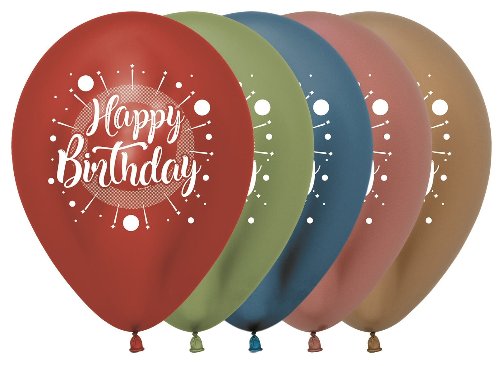 Palloncini Happy Birthday Multicolore Reflex Mix 30cm 25pz