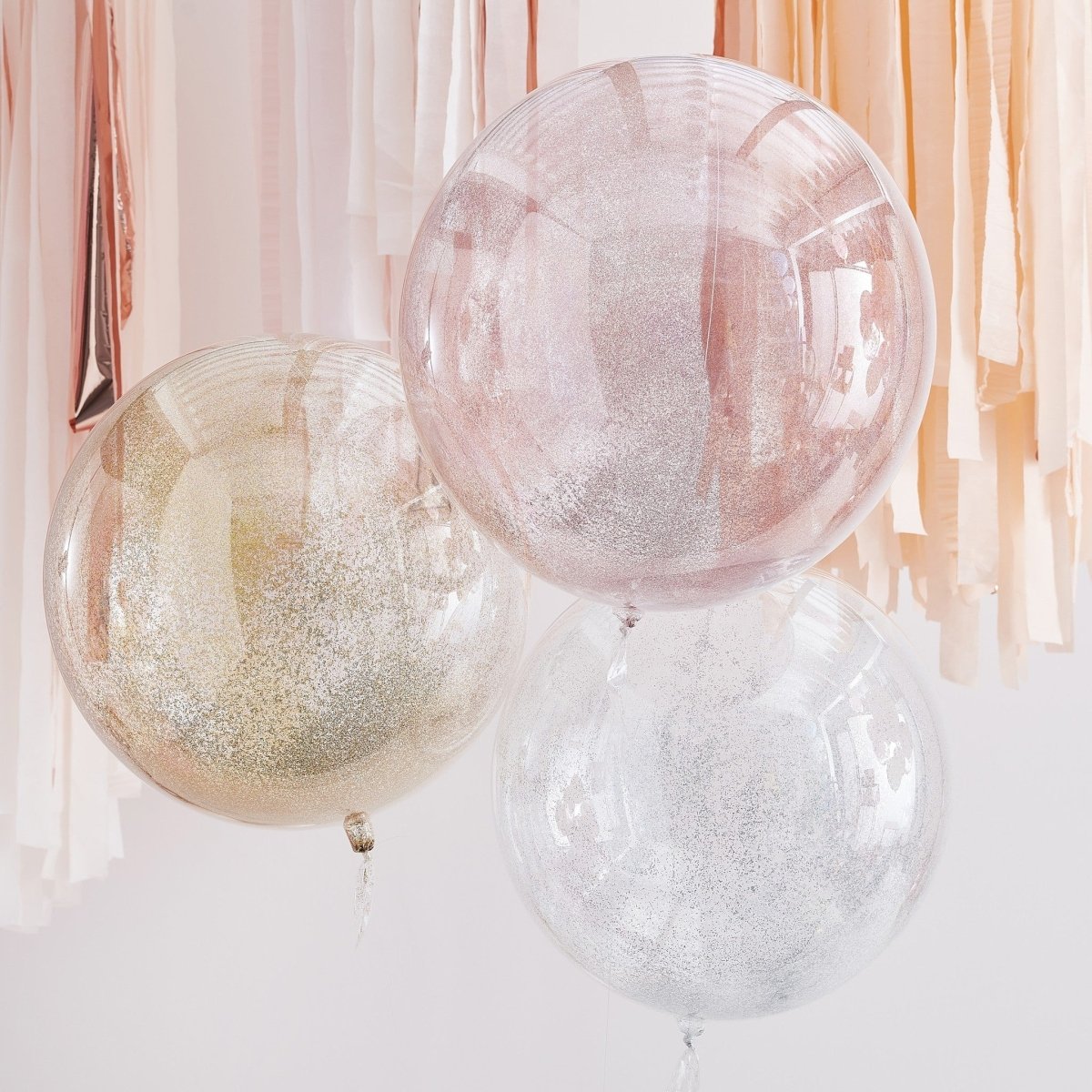 Lascia che i tuoi ospiti ammirino i tuoi bellissimi allestimenti per feste con i nostri palloncini Mixed Metallics Glitter Orb. Ogni confezione contiene 3 palloncini nelle tonalità più scintillanti dell'oro, dell'argento e dell'oro rosa Questi palloncini a elio sono perfetti per ogni occasione e noi abbiamo il materiale gratuito per feste perfetto per far sì che i tuoi ospiti si fermino a guardare! Dai un'occhiata alla nostra gamma Mix it Up di bellissimi fondali, bomboniere, incredibili esposizioni di palloncini e fondali di stelle filanti e molto altro ancora.