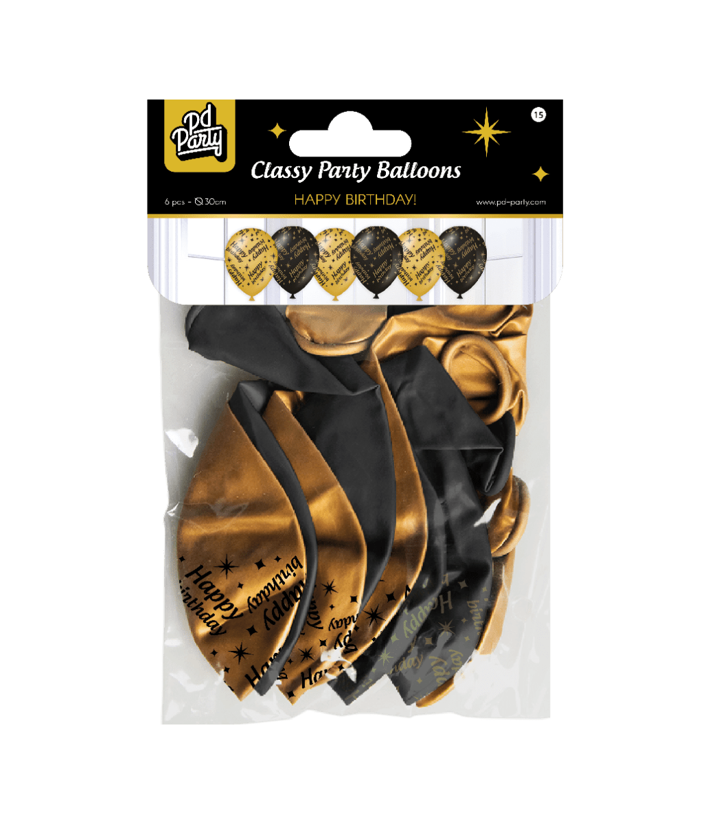 Palloncini Buon Compleanno Oro Nero 30cm 6 pezzi