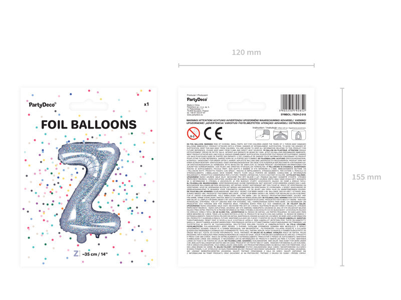 Palloncino in foil Lettera Z Olografica Vuoto 35cm