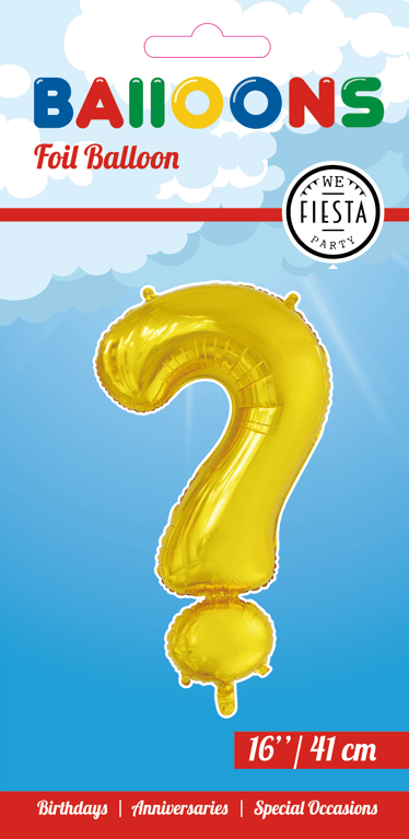 Palloncino in foil Punto interrogativo? Oro 41cm con cannuccia