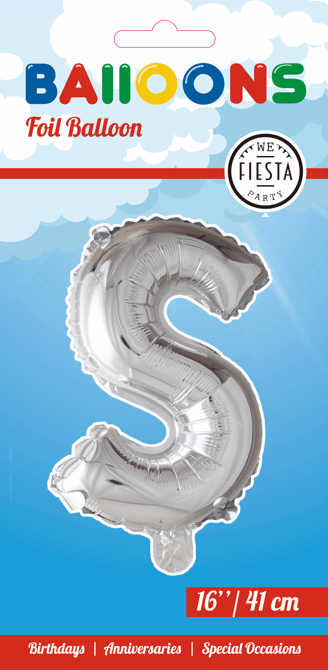 Palloncino in foil Lettera S Argento 41cm con cannuccia