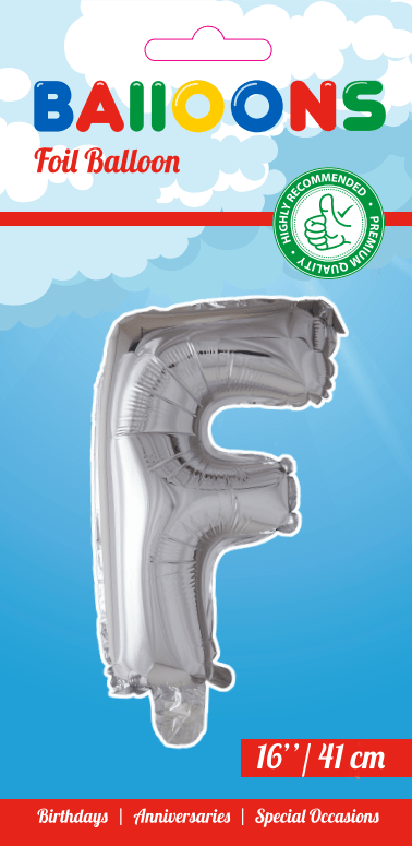 Palloncino in foil Lettera F Silver 41cm con cannuccia