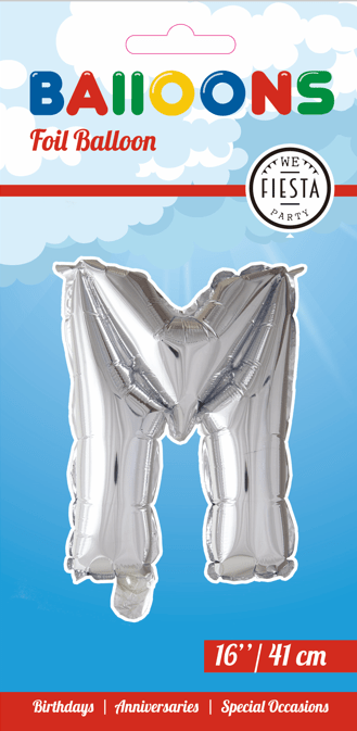Palloncino in foil Lettera M Argento 41cm con cannuccia