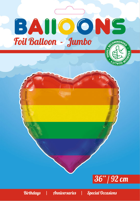 Palloncino ad elio Cuore Arcobaleno XL Vuoto 92 cm