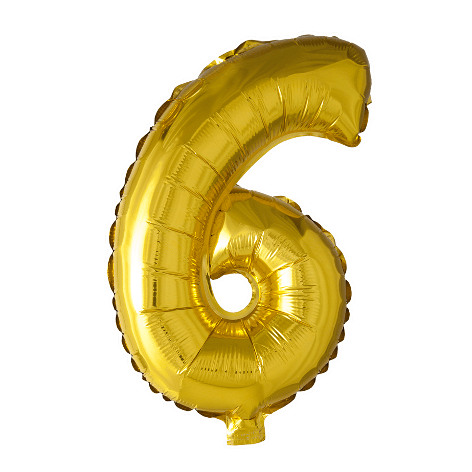Palloncino in foil Figura 6 Oro 41cm con cannuccia