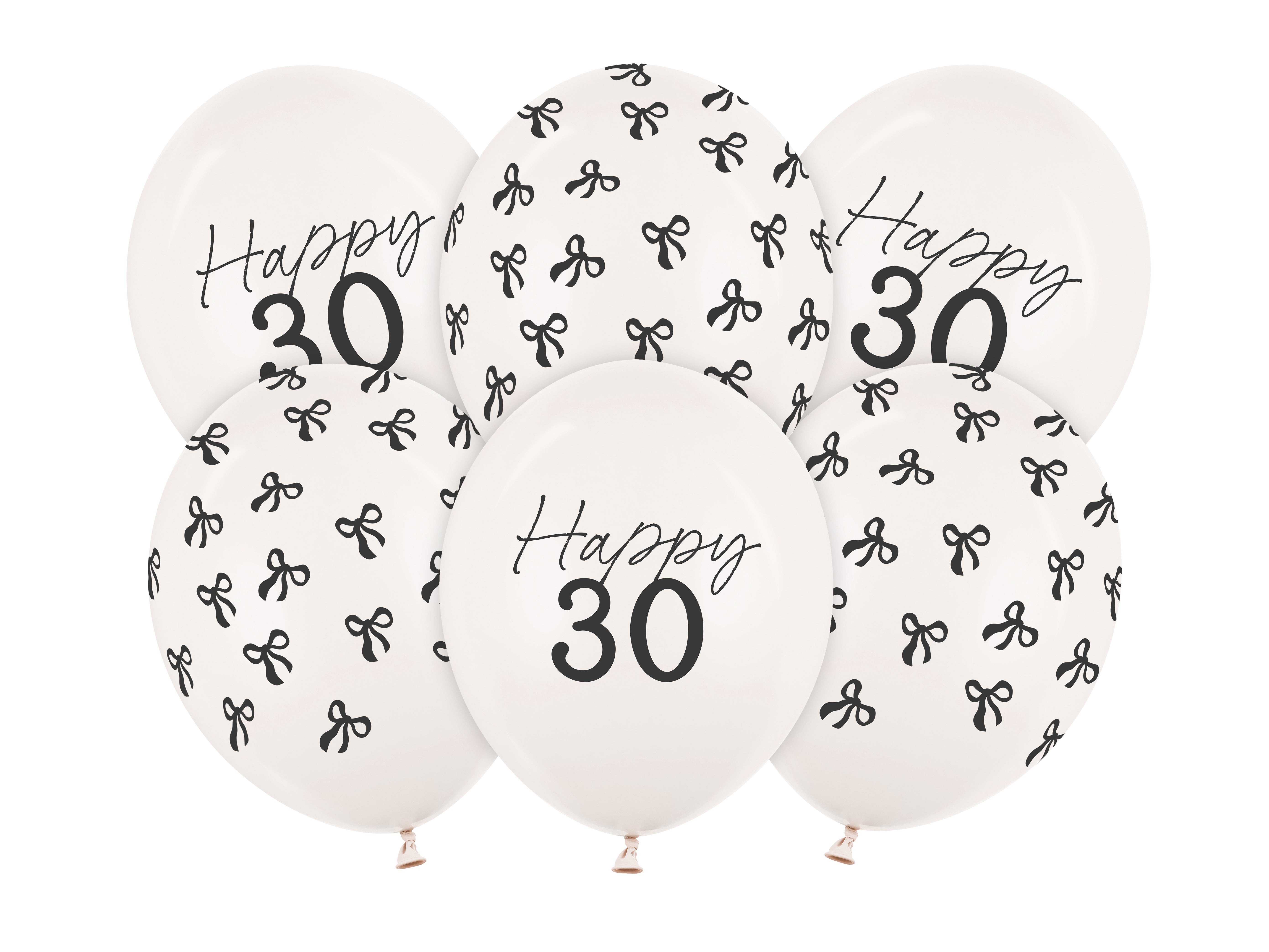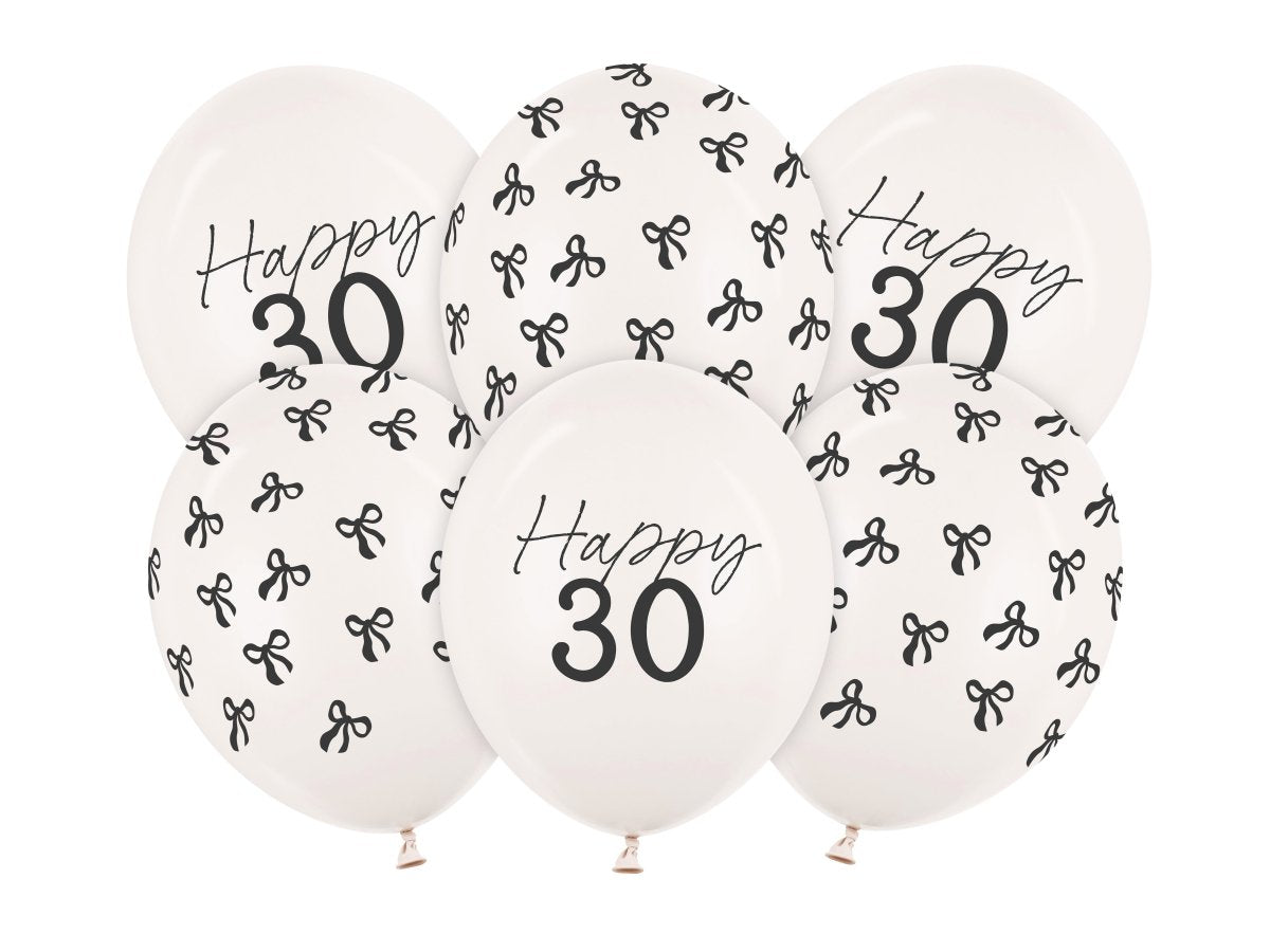 Palloncini 30 anni nero bianco con fiocco 30cm 6pz