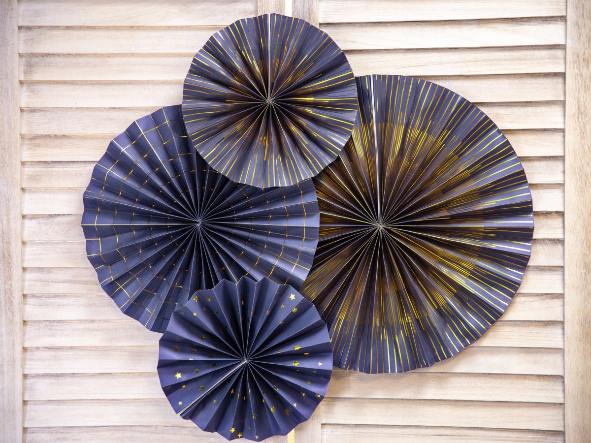 Ventagli di carta blu Set 23-40cm 4 pezzi