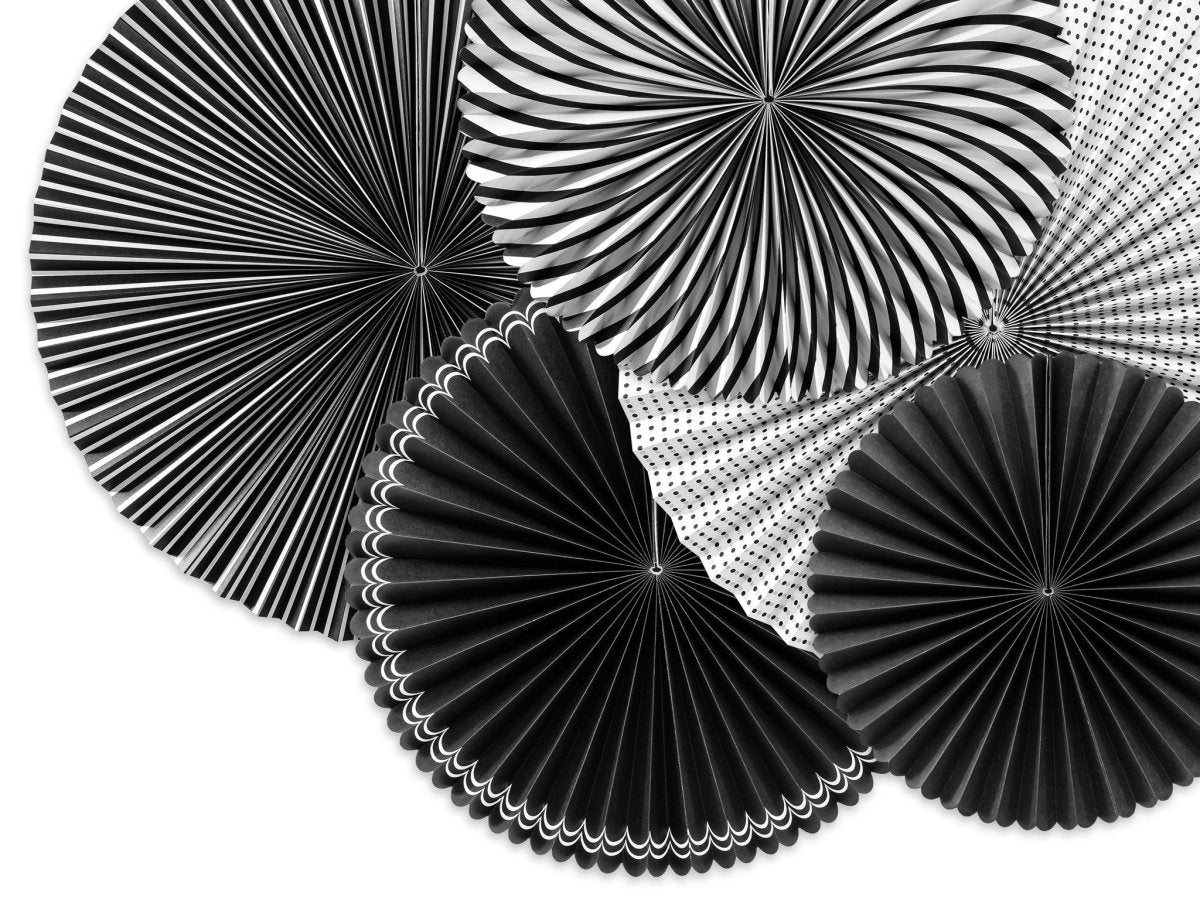 Ventagli di carta bianco nero Set 25-40cm 5 pezzi