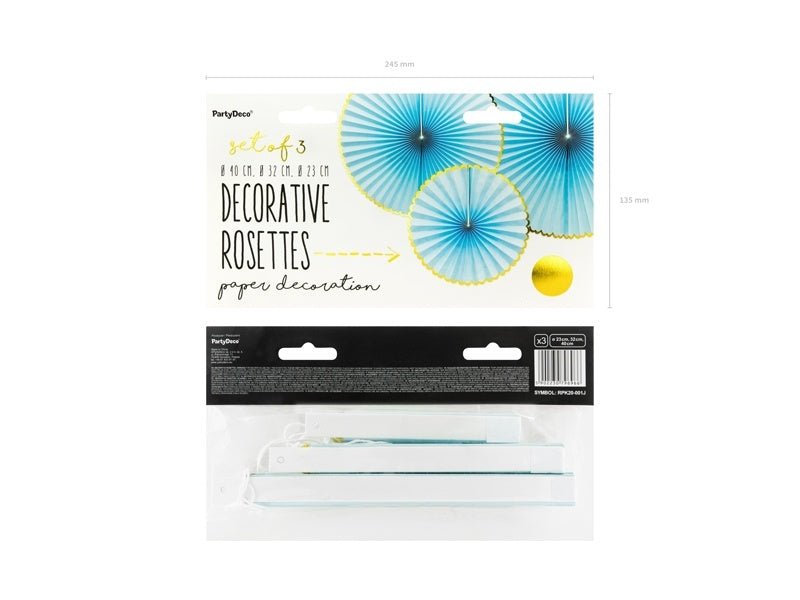 Ventagli di carta Azzurro Oro Set 23-40cm 3 pezzi