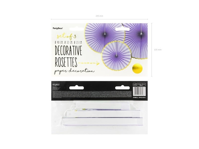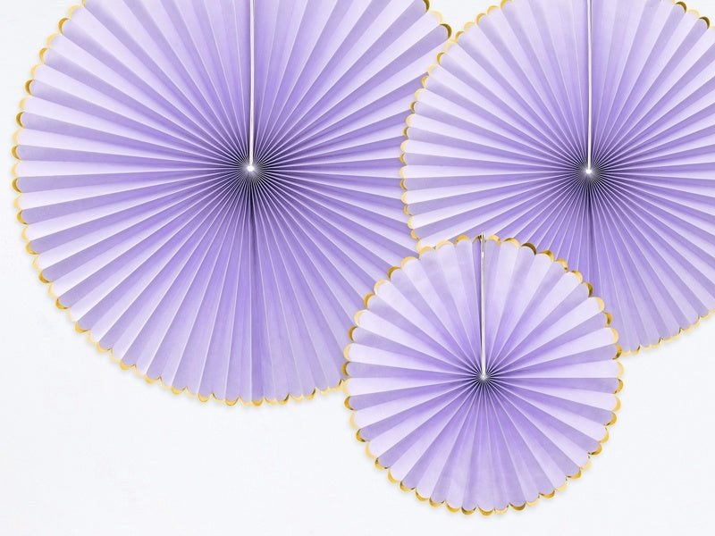 Ventagli di carta Lilla Oro Set 23-40cm 3 pezzi