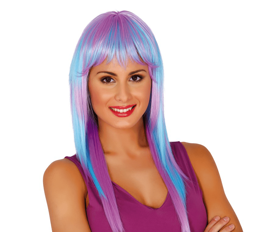 Parrucca capelli lunghi blu rosa