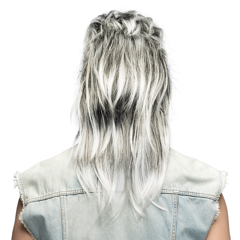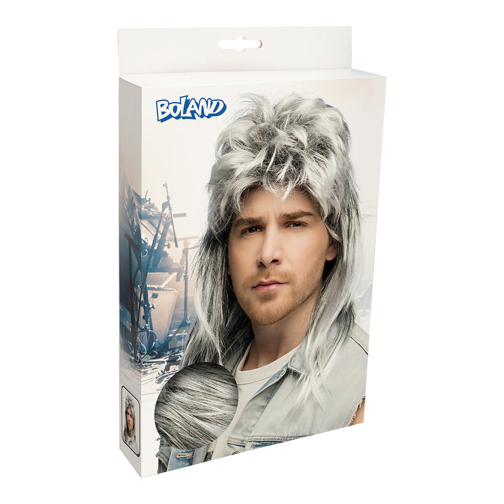 Tipo: parrucca mullet grigia ('business davanti, party dietro')
