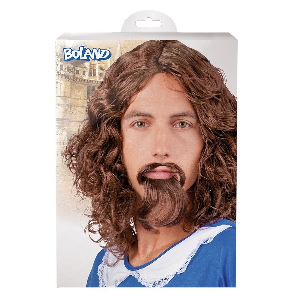 Parrucca marrone da moschettiere con baffi e barba